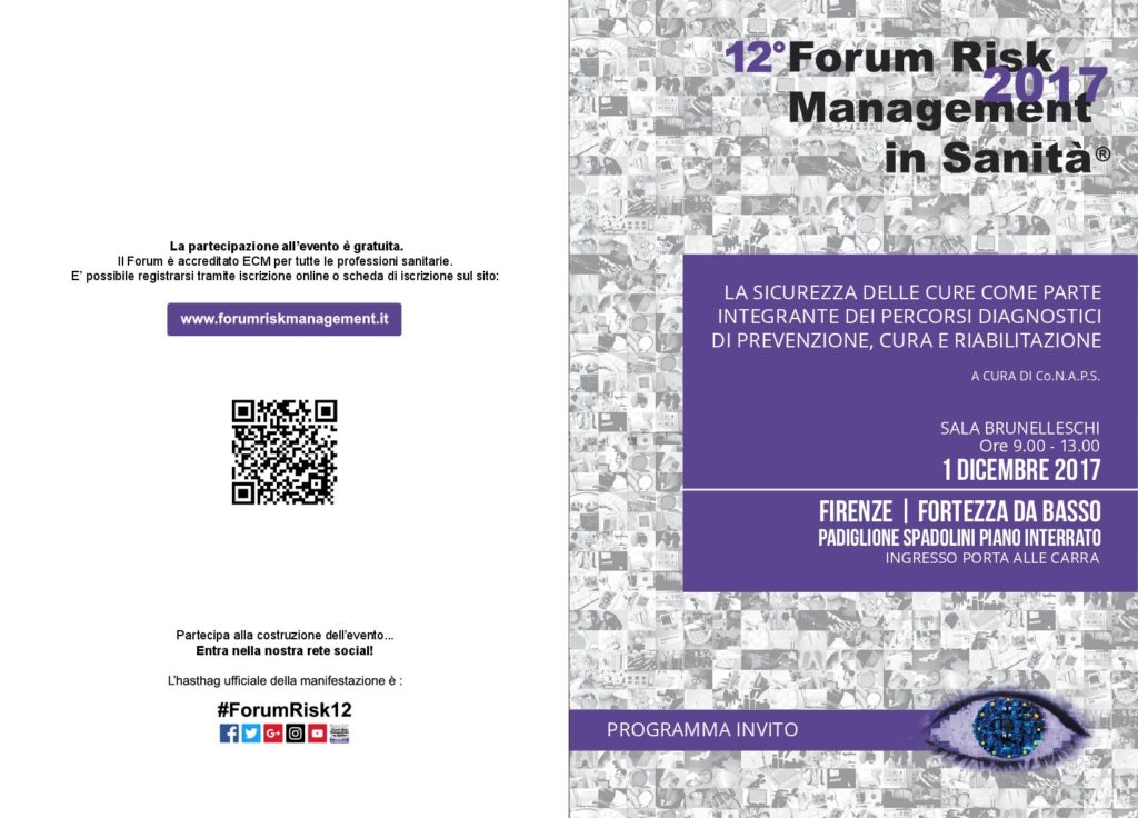 LA SICUREZZA DELLE CURE COME PARTE INTEGRANTE DEI PERCORSI DIAGNOSTICI DI PREVENZIONE, CURA E RIABILITAZIONE - A CURA DI Co.N.A.P.S. 1 DICEMBRE 2017 - Ore 9.00 - 13.00 - FIRENZE