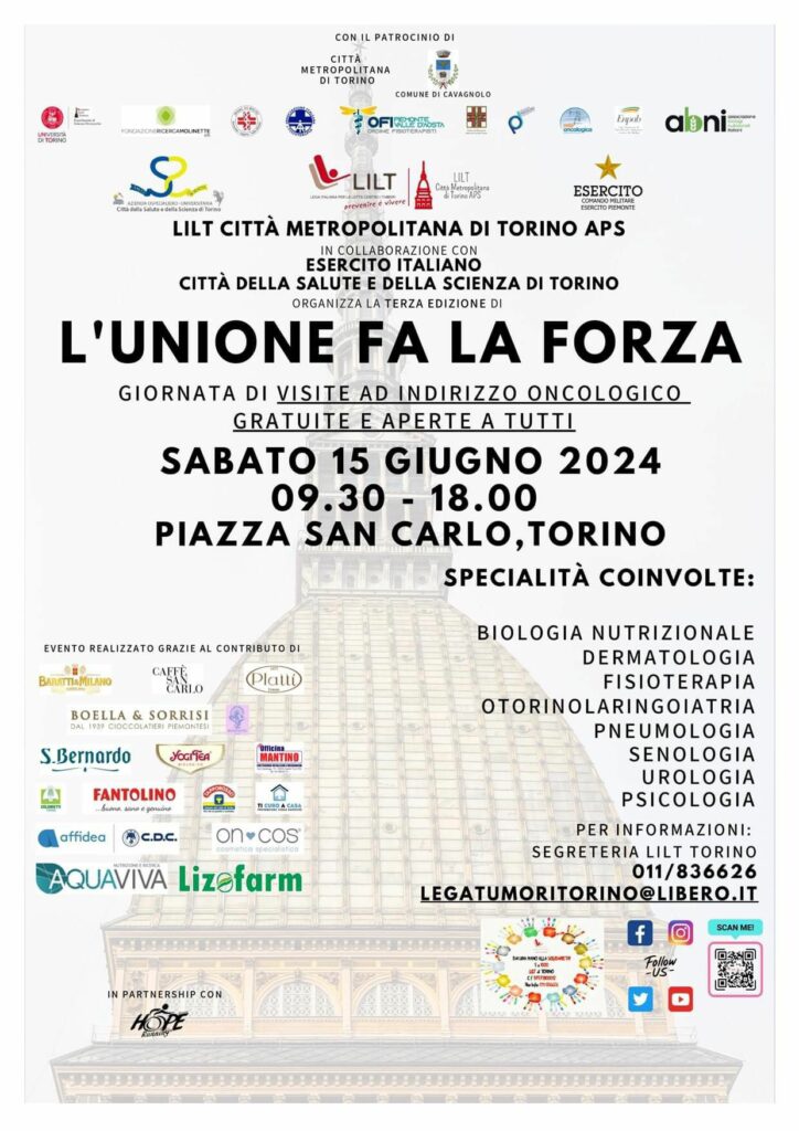 Si è svolta sabato 15 giugno a Torino nel cuore di Piazza San Carlo la terza edizione dell’iniziativa “L’unione fa la Forza “ promossa dalla Lilt Torino – Lega Italiana per la lotta contro i Tumori- , in collaborazione con l’Esercito Italiano e Città della Salute e della Scienza di Torino.