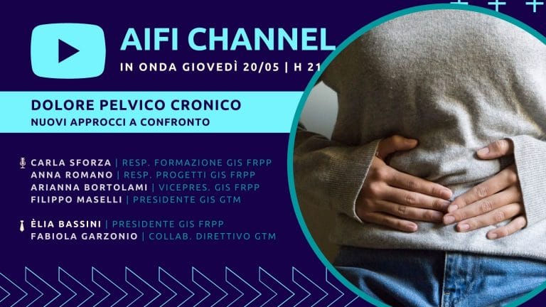 Giovedì 20 maggio ore 21.00 ci vediamo su AIFI Channel per parlare di dolore pelvico cronico con il GIS FR Pavimento Pelvico e il GIS GTM...
