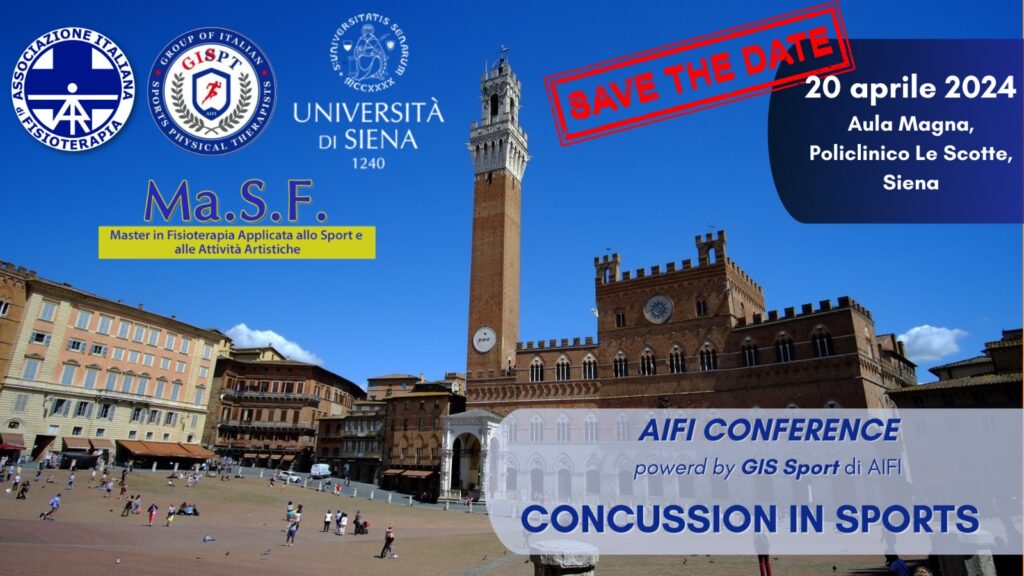 AIFI Conference del GIS Sport incentrata sulle Concussion negli Sport, in collaborazione con l'Università degli Studi di Siena, col Master in Fisioterapia applicata allo Sport UNISI e con la ST Toscana di AIFI