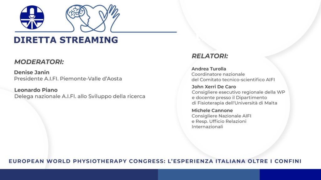quinta edizione del Congresso Europeo di Fisioterapia si è svolto nei giorni 11 e 12 settembre 2020 nella forma on-line a causa dell’emergenza sanitaria da Sars-Cov2.