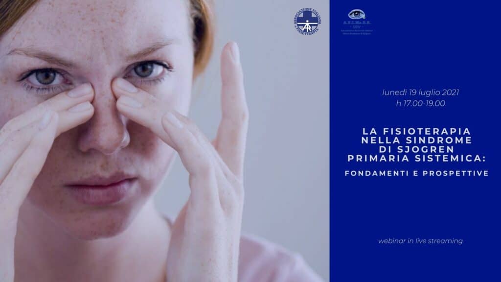 Lunedì 19 luglio 2021 ore 17.00-19.00 appuntamento in webinar con La Fisioterapia nella sindrome di Sjögren Primaria Sistemica: fondamenti e prospettive, l’incontro a doppio marchio firmato da AIFI e A.N.I.Ma.S.S. ODV che aprirà la settimana nazionale dedicata alla Sindrome.