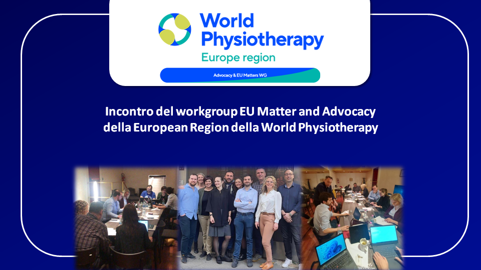 Sabato 25 marzo si è tenuto a Roma, grazie al supporto logistico di AIFI, l’incontro in presenza del workgroup EU Matter and Advocacy della European Region della World Physiotherapy per fare il punto sui tanti progetti in corso gestiti negli scorsi mesi a distanza.