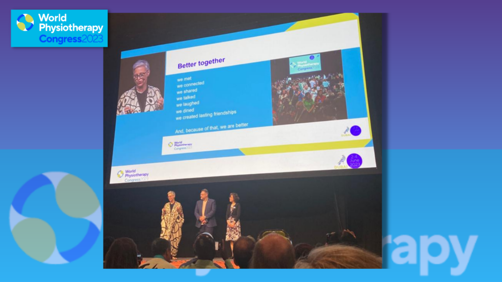 “Durante la cerimonia di chiusura – conclude Michele Cannone – abbiamo vissuto il passaggio del testimone tra la presidente uscente Emma Stokes e il nuovo presidente Michel Landry. Landry nel suo breve discorso ha sottolineato il bisogno di abbattere le distanze segnate dalla barriera linguistica – obiettivo da raggiungere come da mandato durante il General Meeting – e ha aggiunto inoltre che il futuro della Fisioterapia Mondiale sarà segnato da una maggiore attenzione alla regionalità, citando la sua esperienza in Sud America e Kosovo.”